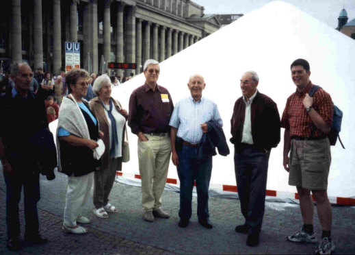 Die Anfänge reichen zurück in das Jahr 1946. Der 2. Weltkrieg mit all seinen Schrecken, mit seiner riesengroßen Not, mit der absoluten Zerschlagung und größtenteils Vernichtung der gesamten Industrie Deutschlands, mit seinen vielen Millionen hungernden, arbeitslosen, obdachlosen und heimatvertriebenen Menschen war gerade zu Ende gegangen, da zog es einen jungen Menschen auf der Suche nach Arbeit, Verdienst und damit auf Brot in die Ferne. Alexander Möck aus Birkenteich war dieser junge Mann. Unglaublich, dass gerade er in dieser sehr schweren Zeit, in Ludwigsburg Arbeit und ein bescheidenes Auskommen finden konnte. ![]() Alexander Möck vor seinem Haus in Echterdingen. 1993 aufgenommen von Konrad Rupp, anlässlich des Besuches des Posaunenchores bei seinem Gründer. In seiner Freizeit schloss er sich dem Posaunenchor Ludwigsburg an und bekam ein Instrument in die Hand gedrückt, ein für damalige Verhältnisse sehr ungewöhnlicher Vorgang, denn wie alles Andere, waren auch Musikinstrumente Mangelware. Fleißig und lernwillig wie er schon immer war, erlernte er alsbald die Handhabung eines Tiefbasses und schon bald gehörte er zum Kreise der Menschen. die die sonntäglichen Gottesdienste mit ihren Klangkörpern umrahmten, mitgestalteten und bereicherten. 1948 zog es Alex Möck wieder nach Hause. Den in Ludwigsburg erlernten Umgang mit Musikinstrumenten nicht vergessend, versuchte er sogleich auch in Bartholomä einen Posaunenchor aufzubauen. Mit heutigen Verhältnissen verglichen sicher keine sehr schwere Aufgabe, 1949/50 dagegen eine absolute Unmöglichkeit. Immer noch galt es Not, Elend und Arbeitslosigkeit zu überwinden. Die gerade vor kurzem durchgeführte Währungsreform brachte es mit sich, dass alle über den Krieg geretteten Ersparnisse endgültig dahin waren. Das sehr Wenige, das man hatte, brauchte man dringend, um die eigene Notlage erträglicher zu gestalten. Es gab keinerlei Musikinstrumente, es gab keinerlei Noten, es gab keine Menschen in Bartholomä, die jemals eine Posaune spielten, jeder vernünftig denkende Mensch hätte aufgegeben, Alexander Möck nicht. ![]() Die fünf Gründungsmitglieder des Posaunenchores Bartholomä im November 1950. Von links: Alex Möck, Willi Kirschbaum, Erwin Möck, Werner Rapp und Konrad Rupp. Photo: Hans Wüst Zum Seitenanfang Zusammen mit Pfarrer Enßlin ging er auf die Suche nach Musikinstrumenten für seinen noch zu gründenden Posaunenchor. Hoffnungslos schien dieses Unterfangen zu werden, als im selben Jahr Pfarrer Enßlin nach Tübingen umzog. Und doch, aus Tübingen kam alsbald die unerwartete Kunde, dass vielleicht etwas zu finden sei. Um Geld zu sparen radelte Alexander Möck von Bartholomä nach Tübingen (man erinnere sich: Räder mit Gangschaltungen gab es damals noch nicht!) und kam tatsächlich einige Tage später mit zwei gebrauchten, aber voll funktionsfähigen Flügelhörnern zurück. Eine lädierte Zugposaune und ein Piston wurden für 80,-DM, beziehungsweise 50,- DM gekauft, der Grundstock des Posaunenchores war damit bereitet. Nun galt es die Bläser für die Instrumente zu finden. Alex Möck suchte und fand diese schließlich in seiner Person, in Willi Kirschbaum, Erwin Möck, Werner Rapp und Konrad Rupp. Der Anfang war geschafft und 1950 begannen diese fünf mit ihren ersten Proben in einem Raum des damaligen evangelischen Kindergartens und heutigem ev. Gemeindezentrum, dem sie bis zum heutigen Tage treu blieben.Zur Beschaffung der Musikinstrumente sei noch folgende wahre Begebenheit vermerkt, die doch ein erstaunliches Licht auf die Einstellung und die Denkweise jener Männer der ersten Stunde wirft: Otto Taxis, 1951 dem Chor beigetreten, erhielt kurz vor Wintereinbruch von seinen Eltern, die auch nicht mit irdischen Gütern übermäßig gesegnet waren, einen beachtlichen Betrag mit dem Auftrag ausgehändigt, einen festen, warmen Wintermantel zu kaufen. Doch ohne Wintermantel kehrte er von seiner Einkaufstour aus Schwäbisch Gmünd zurück, statt des wärmenden Kleidungsstückes hatte er sich ein neues Musikinstrument gekauft. ![]() Posaunenbläser spielen bei der Konfirmation 1959. Personen v.l.: Werner Rapp, Alex Möck, Konrad Rupp, Martin Bohnacker, Otto Taxis, Siegfried Geißler, Willi Kirschbaum, Erwin Möck. Photo: Hans Wüst Zum Seitenanfang Neben der Werbung weiterer Mitglieder, so konnte er Otto Taxis, Werner Rapp, Martin Bohnacker, Siegfried Geißler und Willi Kirschbaum für seine Idee begeistern, sah Alex Möck seine Hauptaufgabe in der Ausbildung seiner Posaunenbläser. Als er jedoch Mitte der 50ziger Jahre aus beruflichen Gründen von Birkenteich verzog, war guter Rat teuer. Zunächst versuchte man sich selbst fortzubilden, doch ohne kompetenten Mann konnte der Erfolg nicht allzu groß werden. Heilfroh war man daher, als Pfarrer Weiß die Amtsgeschäfte der ev. Kirche Bartholomä übernahm. Mit seinem musikalischen Wissen, versuchte er dem Chor zu helfen wo immer er konnte und steuerte so zur weiteren Ausbildung der Spieler einen nicht geringen Anteil bei. Nicht vergessen werden soll hier auch die segensreiche Ausbildungsarbeit von Posaunenwart Wolfgang Queitsch aus Schwäbisch Gmünd. Dieser fuhr des öfteren, auch im Winter bei Eis und Schnee unverzagt von Gmünd herauf nach Bartholomä und nebenbei sei es bemerkt - zu jener Zeit da hat es im Winter bei uns noch geschneit.Er kam nicht im beheizten PKW - wie heut so üblich, sondern in einem Motorroller - oh wie betrüblich.Er nahm die Strapazen auf sich, erstaunlich gelassen, wollte er doch seinen Chor auf der Alb nicht alleine lassen. Er hat manche Chorprobe mit uns geschafft und zweifellos uns ein Stück weitergebracht. So beschreibt der unvergeßliche Otto Taxis 1990 in seinem Gedicht zum 40-jährigen Bestehen des Posaunenchores das Wirken dieses Mannes. Nach der Verabschiedung von Pfarrer Weiß brachte die nachrückende Pfarrfamilie Baumgärtner eine kontinuierliche Weiterentwicklung der Posaunenbläser mit sich, denn auch Pfarrer Baumgärtne
